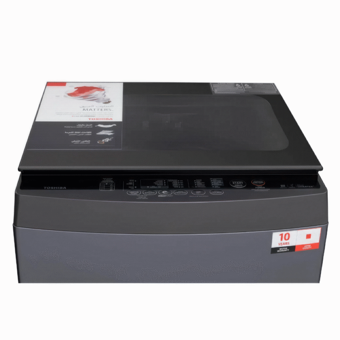 Built for heavy, frequent laundry days, the Toshiba AW-DUK1300KUPEG(MK) combines big-family capacity with refined fabric care and long-term reliability. The spacious 13 kg drum accommodates bulky items like blankets and duvet covers, while the Direct-Drive Inverter (DDM) motor connects the drum straight to the drive shaft—reducing vibration, noise and mechanical wear for a smoother, quieter experience over time. Toshiba’s wash engineering mixes Ultra Fine Bubble (UFB) technology—nano-sized bubbles that penetrate fibres and help detach residues—with The GreatWaves™ dynamic water flow for deeper cleaning with less tangling. Everyday convenience is covered by a 15-minute Quick Wash for light loads, an I-Clean self-clean routine to keep the tub fresh, and a Soft-Close hydraulic lid that shuts gently with no slamming. A protective Water Shield™ inlet filter helps block impurities from the water supply, and a practical Easy-Kit drawer optimises detergent and softener mixing. The ergonomic, snag-free No-Angular inner tub design treats fabrics more gently. Finished in modern Silver / Morandi Grey (MK), the machine blends easily with contemporary interiors. For peace of mind in Egypt, the manufacturer offers a 10-year warranty coverage—reflecting confidence in the motor, drum and overall build. If you need serious capacity, quiet operation and thoughtful maintenance tools in a top-loader, AW-DUK1300KUPEG(MK) delivers reliable performance day after day.