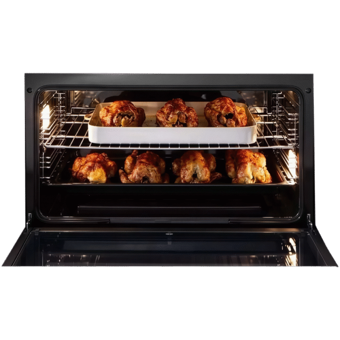 | Oven | Spacious cavity with built-in fan, fixed grill, oven light, 2 rotisserie motors (2 skewers) |