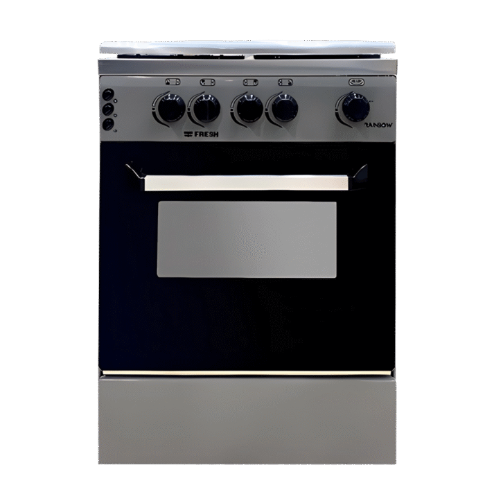 Fresh Rainbow 60 cm Gas Cooker – 4 Burners, Black × Silver – Full Safety & Auto Ignition (5-Year Warranty)