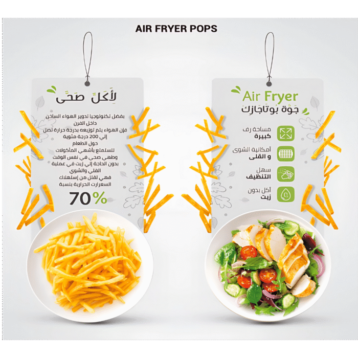 - Built-in Air Fryer function for crispy fries, chicken and veggies with less oil.