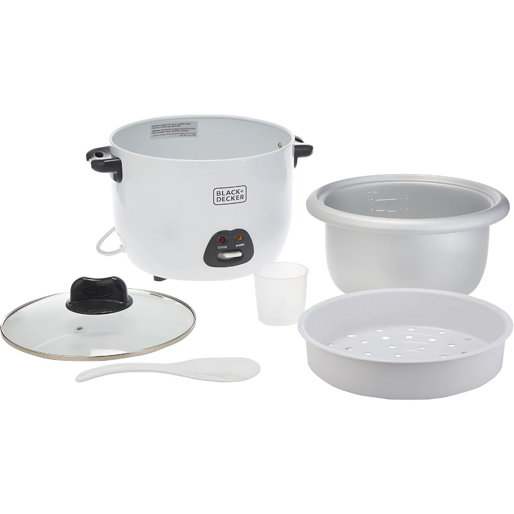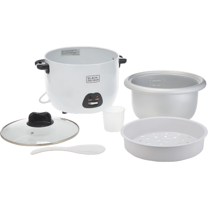 Black+Decker Rice Cooker – 1.8L – 588–700W – Steaming Tray – White – RC1850-B5-SP