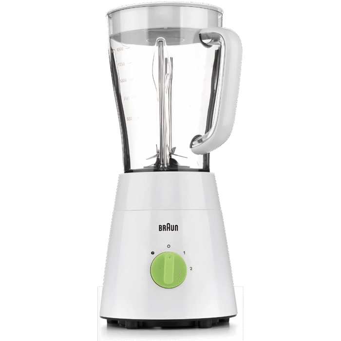 Be the first to review “(Braun 2-in-1 Blender – 500W – 1.5L – 2 Speeds + Pulse – 4 Blades – White/Green – (JB0115WH” Cancel reply