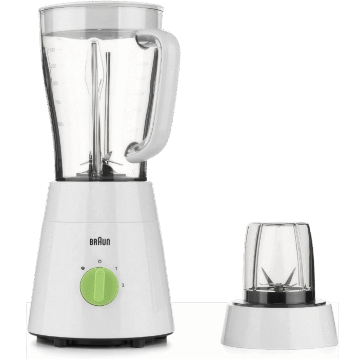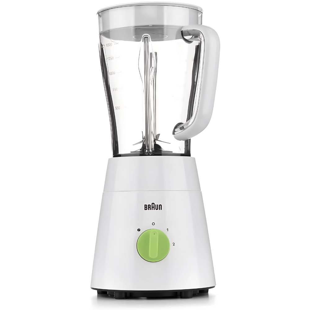 Braun JB0115WH – 500W, 1.5 L Working Jug (max ≈1.75 L), 4-Blade System – White/Green