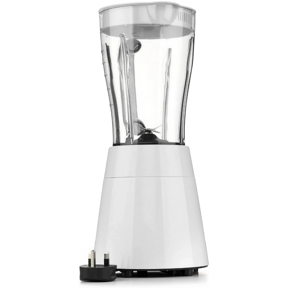 The Braun JB0115WH is a compact 2-in-1 blender that pairs smooth blending with handy dry-grinding. A reliable 500W motor drives an advanced 4-blade system for quick, even textures. The lightweight plastic jug offers a family-friendly 1.5 L working capacity (max ≈1.75 L), while the included mill attachment takes care of coffee beans, spices and nuts. With 2 speeds + Pulse you can fine-tune results from chunky salsas to silky smoothies. Anti-slip feet help keep the base steady, and the detachable parts are easy to rinse after use—backed by an 2 Year warranty.