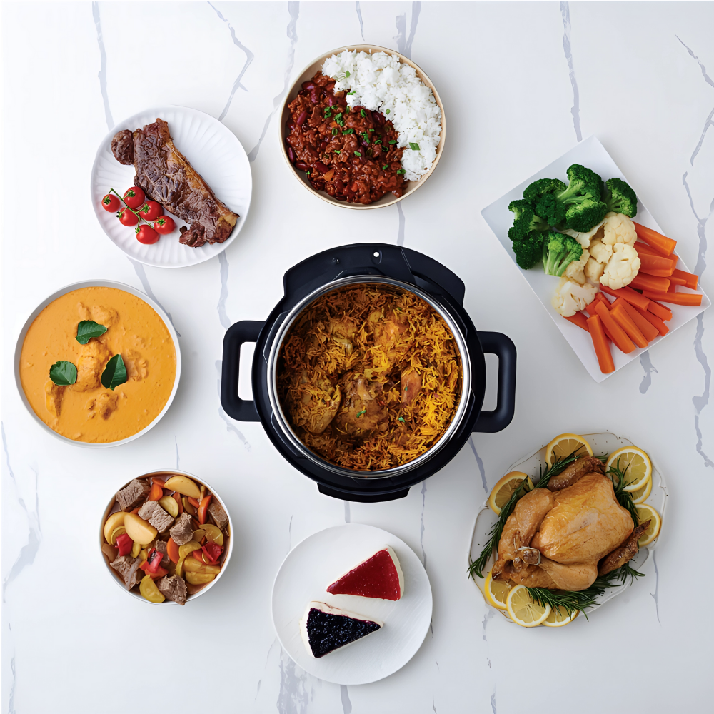 (ideal for big batches and large families), it combines 9 appliances in 1—including pressure cooking, sautéing, slow cooking, rice,