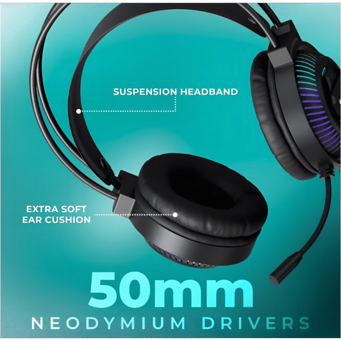 The JEDEL GH-558 delivers immersive gameplay with 50 mm neodymium drivers and virtual 5.1 surround over USB. An omnidirectional noise-reduction mic keeps voice chat clear, while soft ear cushions and a padded headband maximize comfort. RGB lighting adds a clean aesthetic. Connect via USB (and included/optional 3.5 mm leads, depending on batch) for broad compatibility.