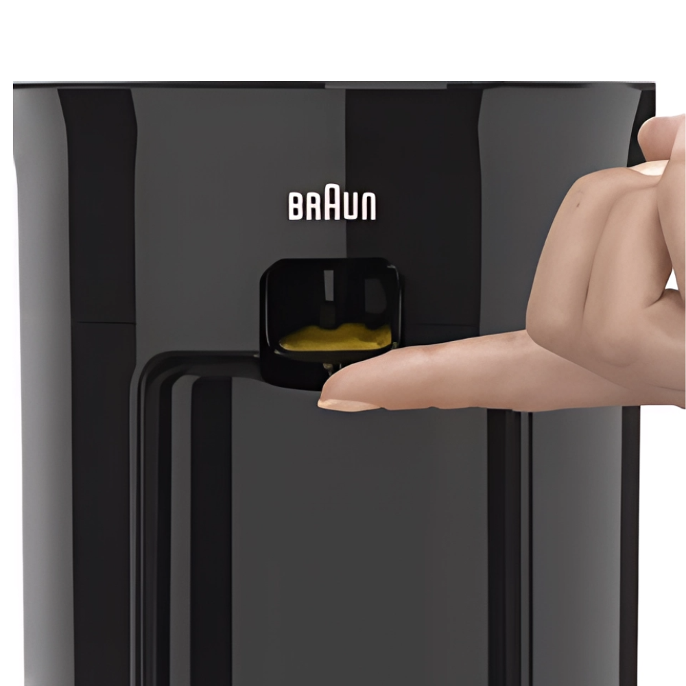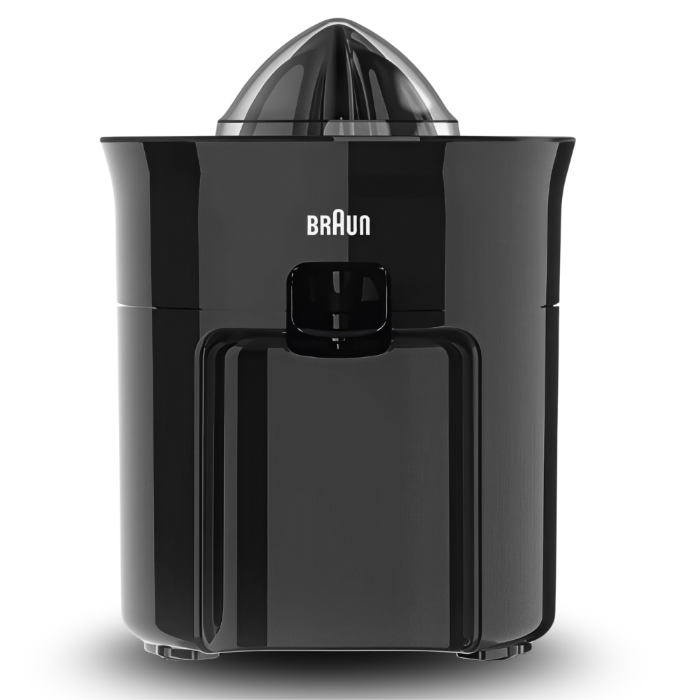 The Braun CJ3050 makes fresh citrus juice simple: direct-serve into your glass, a clean anti-drip spout, and automatic start/stop—press the fruit to start, lift to stop. The efficient 60 W motor powers quick extraction, while BPA-free food-contact parts and dishwasher-safe components streamline cleanup. Comes with a protective plastic lid. Finished in Black with an international warranty.