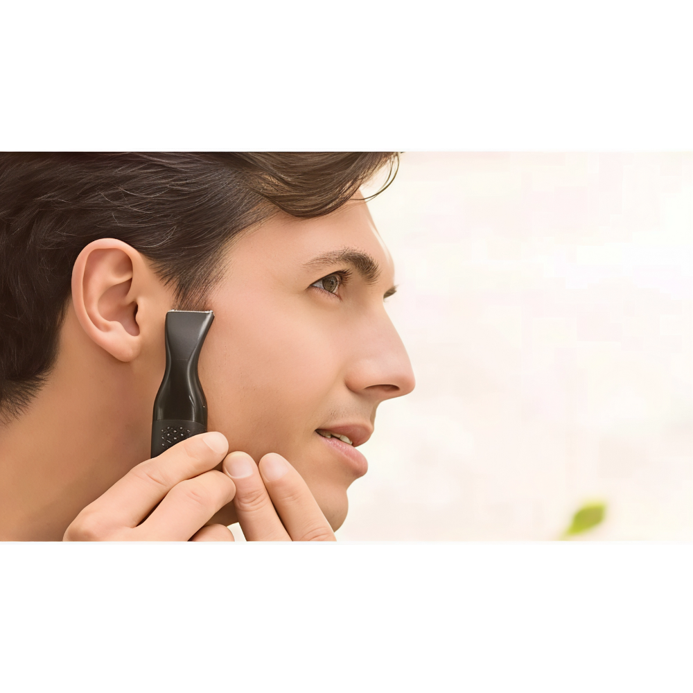 This kit adds a precision detail trimmer head to edge mustache/sideburns and tidy lines, plus eyebrow combs (3 mm & 5 mm) for even results. It’s battery-powered (AA) so you can groom anywhere—shower-safe and simple to rinse clean.