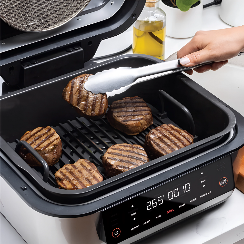 - 6-in-1 cooking: Air Fry, Grill, Bake, Roast, Reheat, Dehydrate.