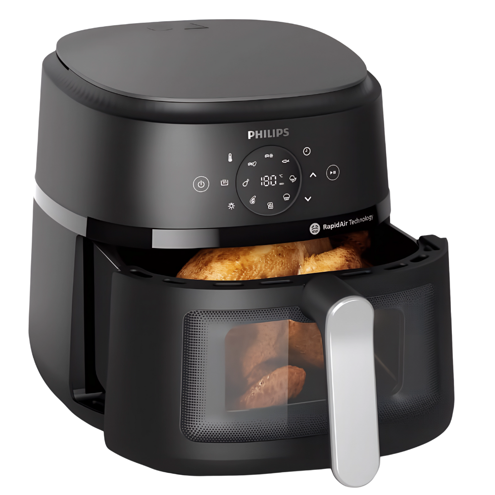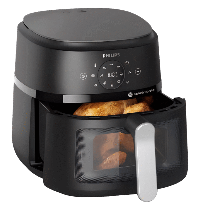 The Philips 2000 Series Airfryer XL (NA231/00) brings faster, healthier cooking to busy kitchens. A roomy 6.2-liter pan and powerful 1700W heater work with Philips’ RapidAir starfish airflow to deliver crispy outsides and tender insides using up to 90% less fat. The clear cooking window lets you watch progress at a glance, while the digital touchscreen offers 9 presets and 13-in-1 versatility—air fry, bake, grill, roast, reheat, defrost, keep warm and more. Cleanup is quick thanks to dishwasher-safe, non-stick parts. With a compact footprint, auto shut-off, and a max 200°C temperature, it’s a smart everyday cooker backed by an international warranty.