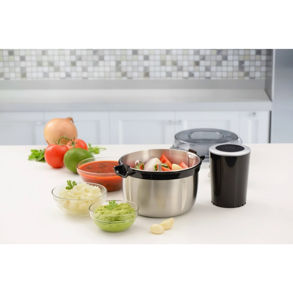 process larger batches in one go—saving time when preparing onions, herbs, vegetables, minced meat, or salad components. Whether you’re cooking