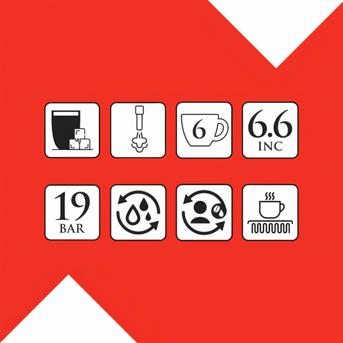 Make 6 drinks fast: espresso, double espresso, americano, iced americano, ground-coffee mode, and milk foam.