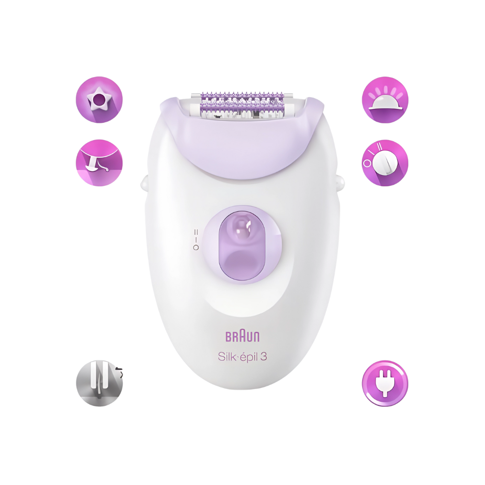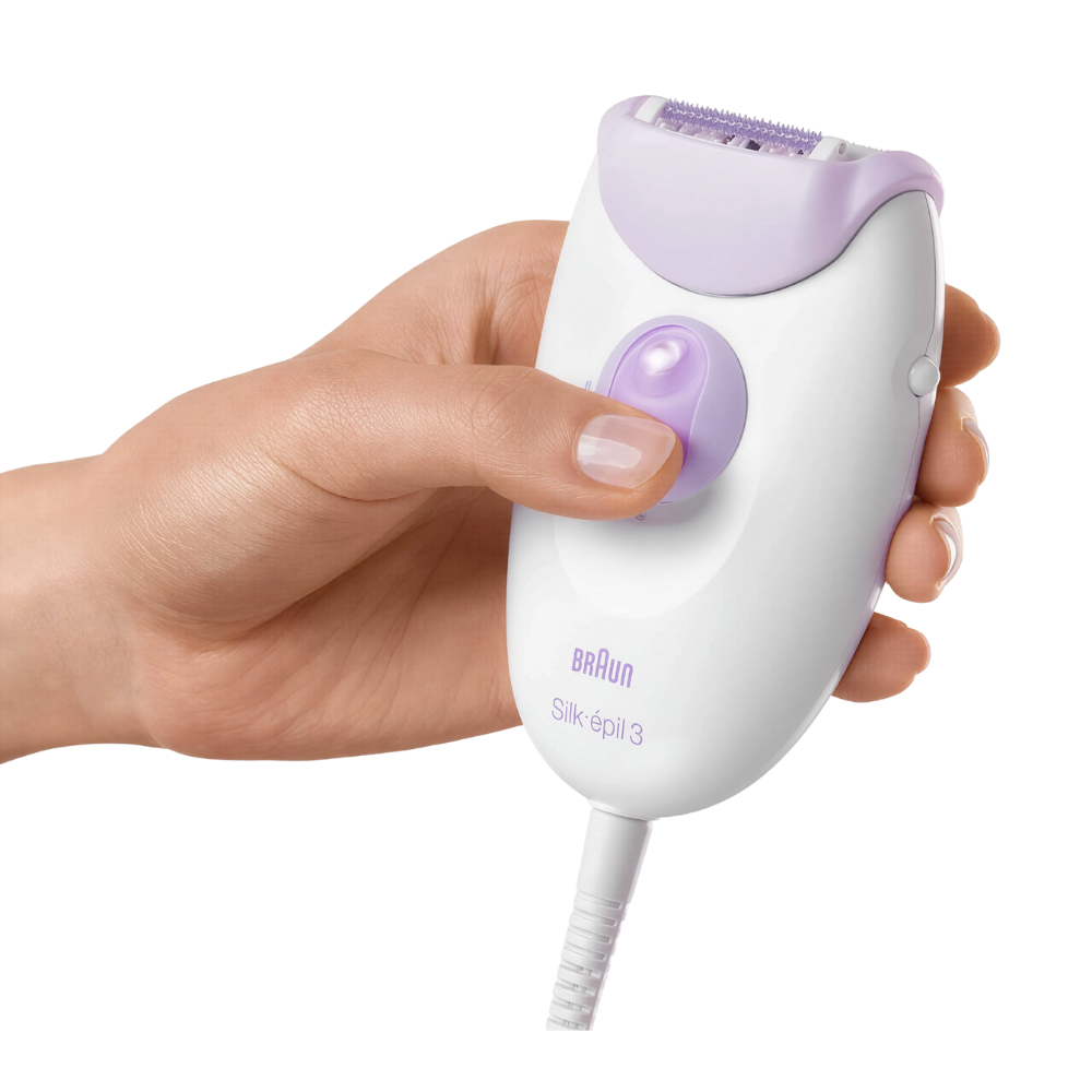 Home / Shop / Braun Silk-épil 3-000 Corded Epilator – Dual Speed, SmartLight, and Massage Rollers – Purple & White