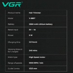 VGR Professional Hair Clipper V-889C DLC Blade 9000 RPM with Charging Stand Original price was: 2,199.00 EGP.Current price is: 1,850.00 EGP.