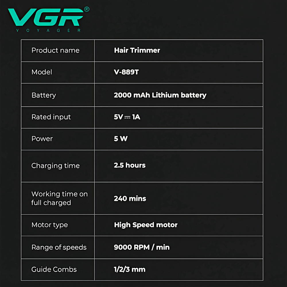 Upgrade your grooming routine with the VGR V-889T professional hair trimmer, designed for sharp edges, clean lines, and accurate detailing.