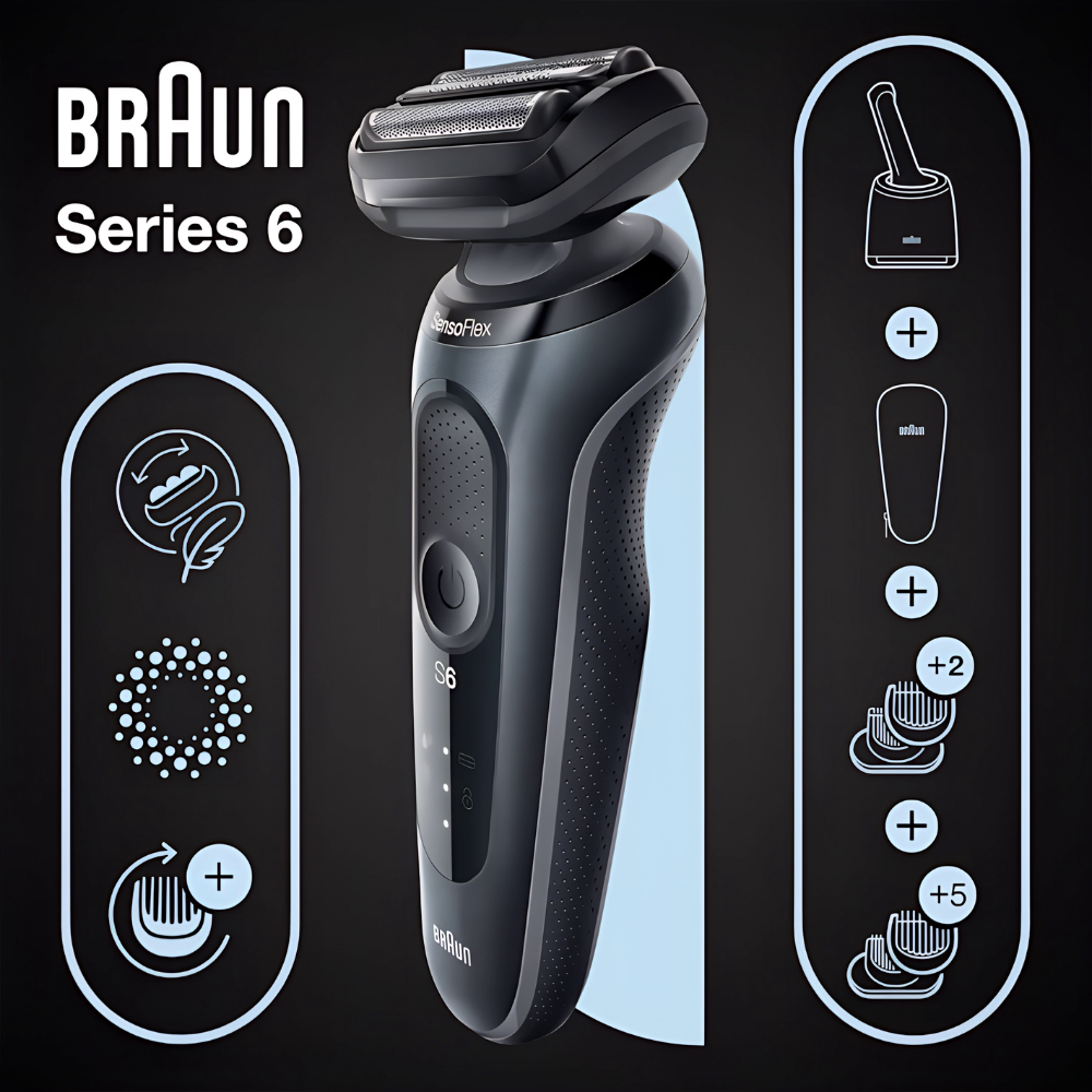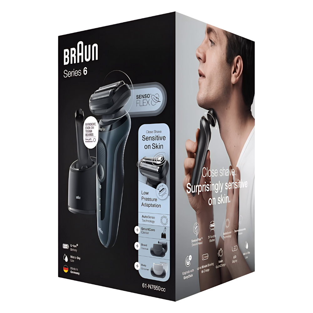 Enjoy a close yet gentle shave with the Braun Series 6 electric shaver, model 61-N7650cc.