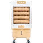 The Castle AC 1185 is a large-capacity 85-liter desert cooler built for hot, dry weather. It features 3 fan speeds, 4 side cooling filters for better evaporation, motorized vertical swing with four-way air deflection, and low power consumption for economical cooling. A sturdy body, castor wheels and simple controls make it easy to move and use all day—up to ≈15 hours per fill. Finished in White × Beige and backed by a 2-year warranty.