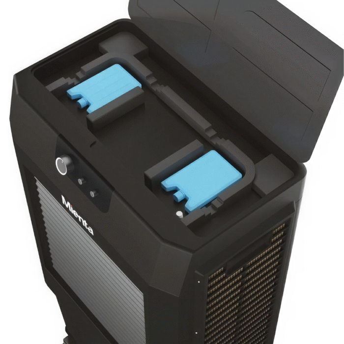 The Mienta AC49138A is a high-capacity 85-liter desert cooler designed for hot, dry climates. It features twin water tanks with a handy garden-hose inlet for continuous cooling, 3 fan speeds, swing with 4-way air deflection, and 3-sided honeycomb pads for efficient evaporation. Daily ease comes from 2 reusable ice packs, a water-level indicator, a safety auto-sensor water pump, and 4 wheels for mobility. Typical power is ≈250 W with airflow up to ≈4000 m³/h. Backed by a 3-year warranty.