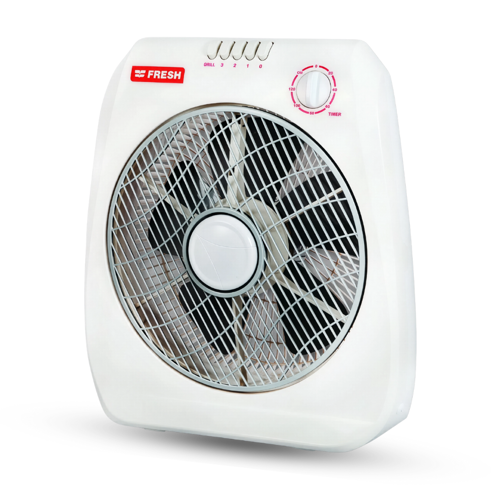 Fresh Box Fan – Boxer – 12″ – 6 Plastic Blades – 3 Speeds – 2-Hour Timer – Rotating Grille – 220V – Made in Egypt