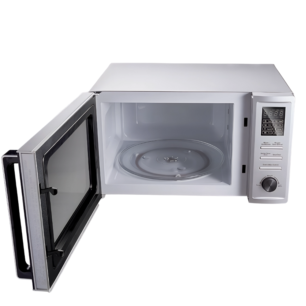 Volume, versatility and simplicity in one unit. The 36L interior fits large plates and medium baking dishes for shareable portions, yet the footprint remains practical for standard countertops. The built‑in grill boosts texture when you want extra crispness without turning on a full‑size oven, and the eight auto menus give you quick, confident shortcuts on busy evenings. The clear panel makes it easy to tweak power for delicate items such as vegetables or bread. With a tidy silver finish that wipes clean in seconds, the MOM‑C36BBE‑S blends neatly with other appliances and keeps your kitchen looking composed. It’s a straight‑talking microwave that earns its place from day one.