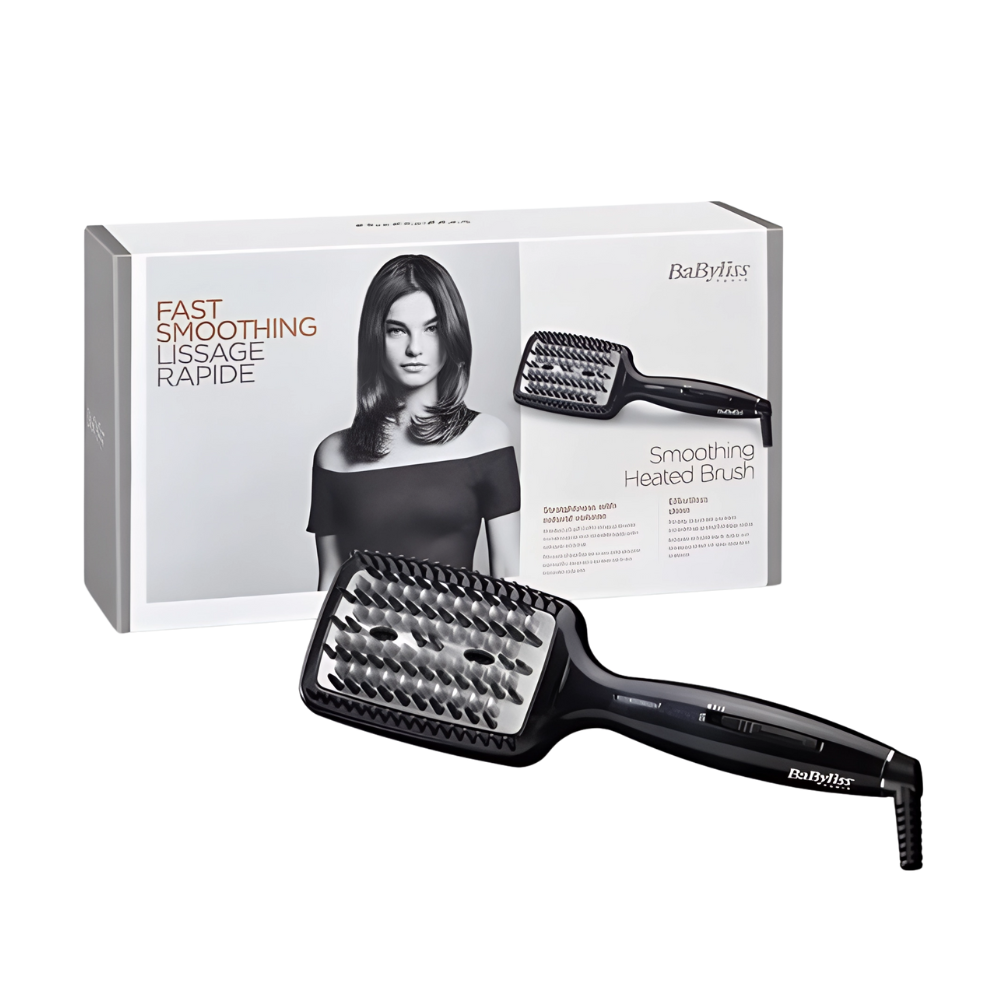 Achieve fast, polished styles with the BaByliss HSB101E heated straightening brush. Designed to smooth, detangle, and straighten in a single pass, it combines ceramic heating with ionic care to reduce frizz and boost natural shine. The wide paddle surface and high-density bristle layout help you cover more hair per stroke, cutting down styling time while keeping results sleek and long-lasting.