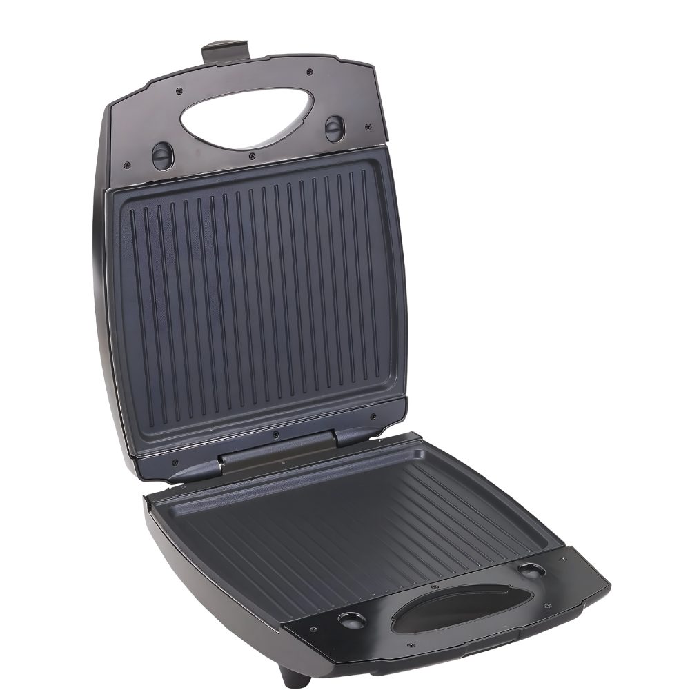 Plates Included | Triangular cut-and-seal sandwich set; ridged grill set (both removable, non-stick) |