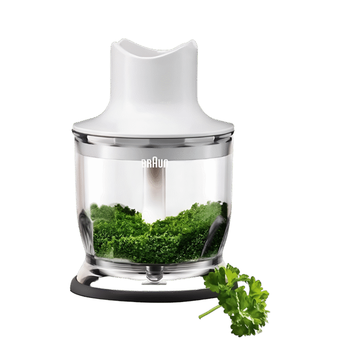 The Braun MultiQuick 3 MQ3025 is built to save prep time while keeping your kitchen spotless. Its efficient 700W motor pairs with PowerBell Plus—a smarter bell shape with an extra milling blade—to draw ingredients into the cutting zone and limit splashes for cleaner cooking. A simple dual-speed control puts texture at your thumb: start gentle for chunky salsas or baby food, then step up to finish silky-smooth soups and smoothies. Braun’s EasyClick system turns the MQ3025 into a mini prep station in seconds: lock on the 350 ml chopper for herbs, onions and nuts, switch to the metal whisk for cream, eggs and dressings, or blend straight in the included 600 ml BPA-free beaker. The stainless-steel blade is tough yet precise, the wand detaches for quick cleaning, and all non-electrical parts are dishwasher-safe. With a comfortable, slim handle and an approx. 1.2 m cord, you get easy reach across hobs and counters. Finished in clean White, MQ3025 delivers countertop-blender confidence in a compact tool—great for weekday soups, weekend pancakes, pesto, hummus and more. Designed for 220–240 V kitchens and backed by an international warranty.