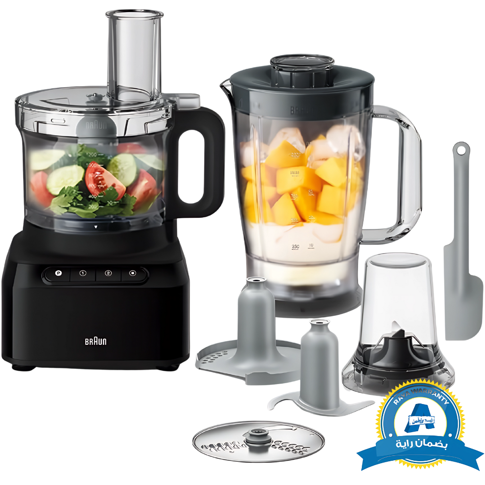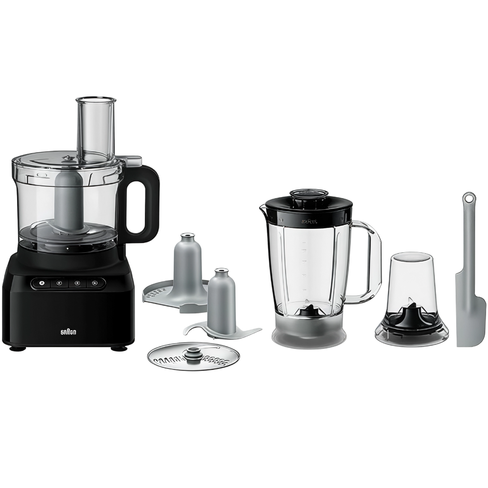 Braun FP3132BK – 800W PurEase Food Processor, 2.1 L Bowl, 1.2 L Blender (Black)