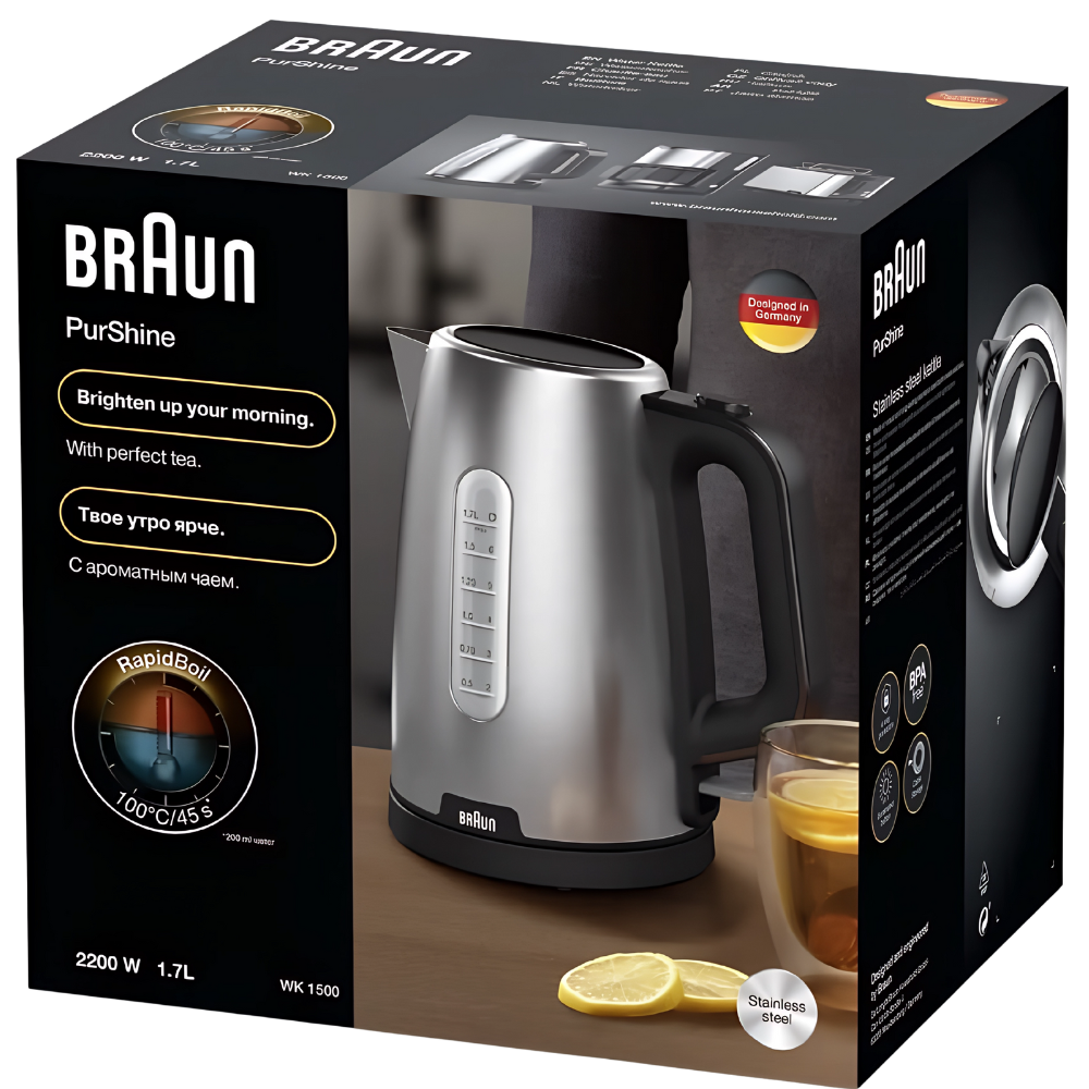 Braun WK 1500 PurShine Stainless Steel Kettle – 1.7 L, 2200 W