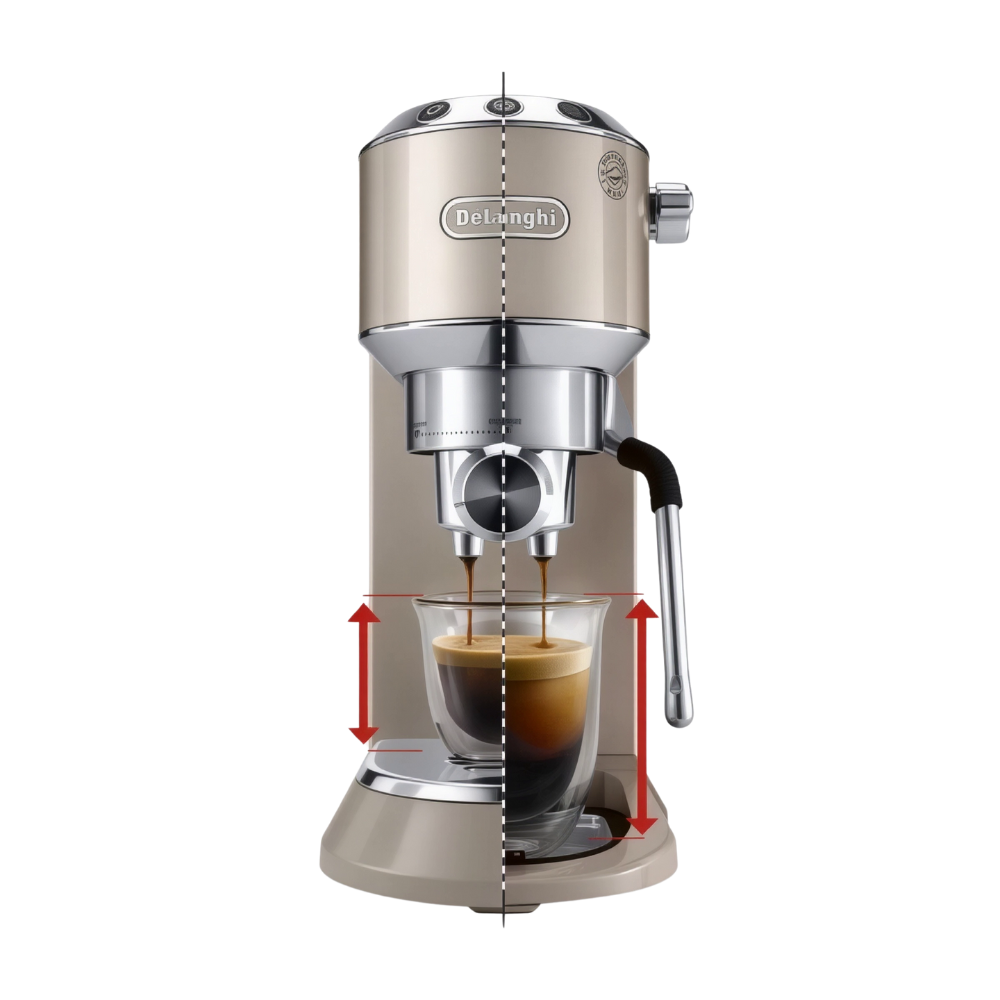 - Adjustable / removable drip tray to fit cups/glasses up to ~12-cm height.