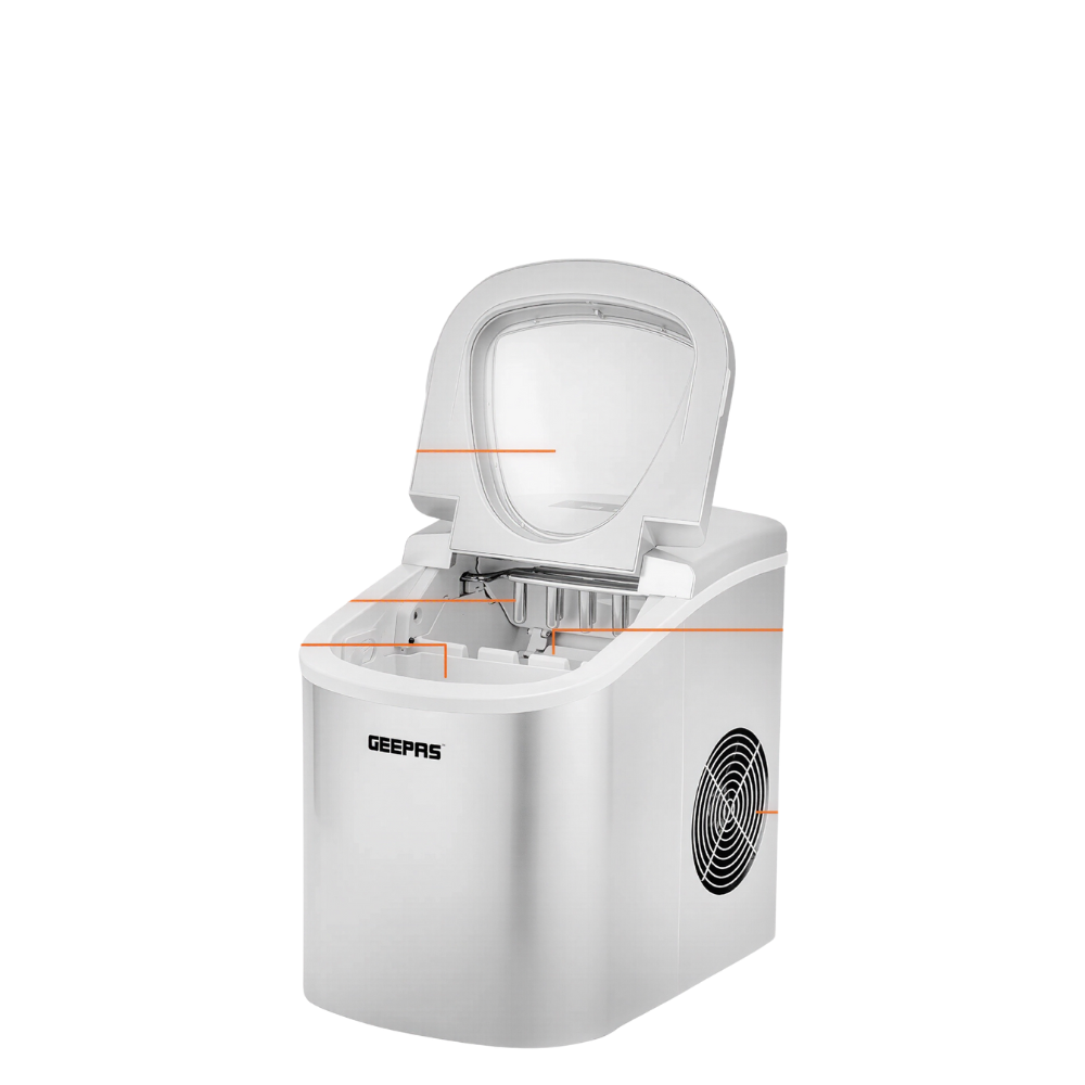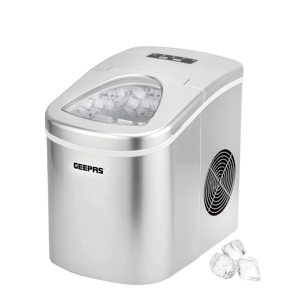 Geepas GIM63015UK Ice Maker – 12 kg/day, 2.2 L Water Tank, 700 g Ice Basket, Two Cube Sizes (Silver)