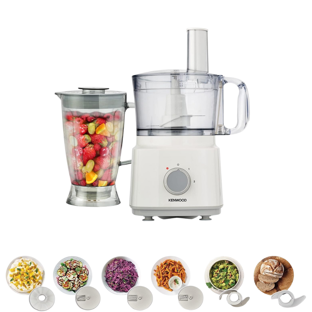 Kenwood FDP03.C0WH – 750W Food Processor, 2.1 L Bowl, 1.8 L Blender, 3 Interchangeable Discs (White)