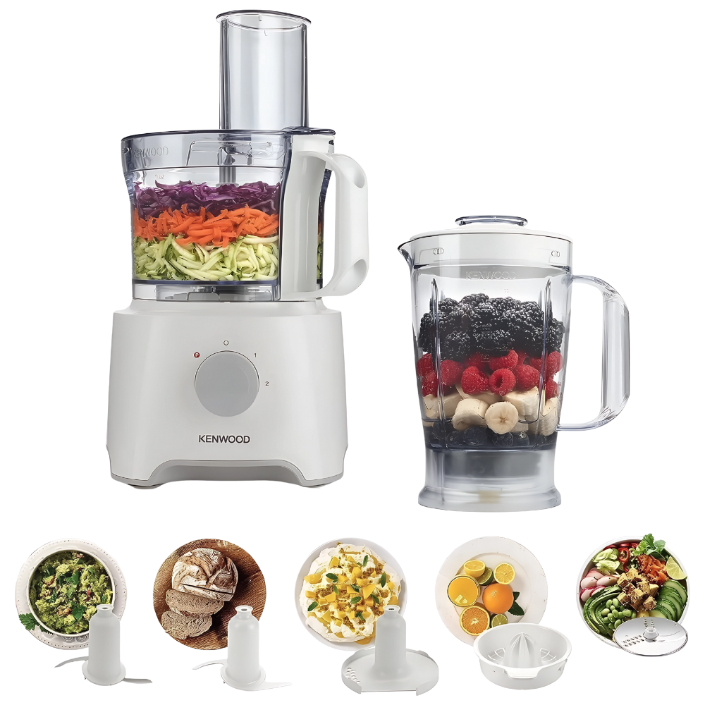 Kenwood FDP303WH – 800W Food Processor, 2.1 L Bowl, 1.2 L Blender, 2 Speeds + Pulse (Plastic)