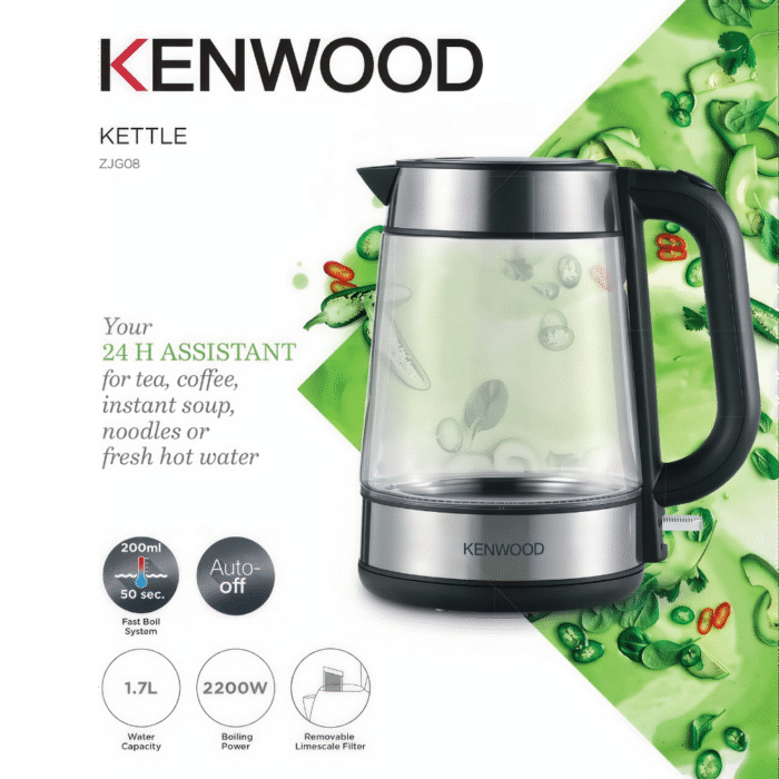 Kenwood ZJG08.000CL Transparent Glass Kettle – 1.7 L, 2200 W