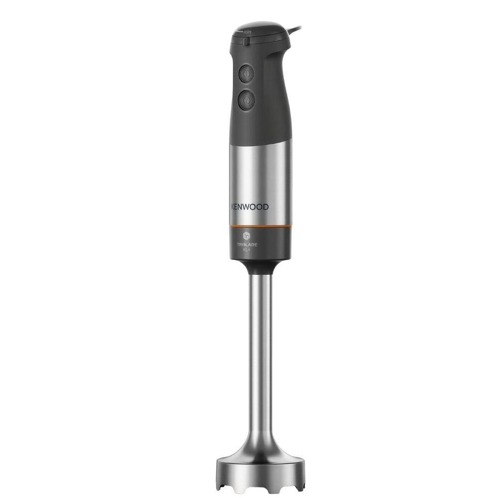 Power, control and reach—packed into a slim wand. The Kenwood Triblade™ XL+ HBM60.307GY couples a robust 1000W motor with continuously variable speed and a dedicated Turbo boost, so you can ease through chunky mixes or blitz to ultra-smooth finishes at a thumb’s turn. Kenwood’s signature Triblade™ system sits inside an XL blending bell that’s ~35% wider, drawing ingredients into the cutting zone for faster, finer results; a shaft that’s about 20% longer gives you deeper reach for stockpots and batch soups with fewer splashes. The Grey finish looks smart on any counter, and the soft, secure grip keeps control even with wet hands. This is more than a blender: the kit unlocks multi-task prep. Clip on the 500 ml chopper for herbs, nuts and aromatics; switch to the purée/masher tool for silky potatoes and baby food; and whip or emulsify with the metal whisk for creams, meringues and dressings. An easy-pour beaker helps you measure, blend and serve with less mess. Swapping tools is quick and positive, while the non-electrical parts are dishwasher-safe to simplify clean-up after busy weeknights. With high torque on tap, the HBM60.307GY handles fibrous veg and thick sauces with confidence yet remains light and nimble for small jobs—perfect for smoothies, soups, pesto, hummus, pancake batters and more. Designed for everyday reliability and backed by an international warranty, it gives you countertop-blender confidence without the bulk. (Accessory bundles may vary slightly by retailer or region—check the box for exact contents.)