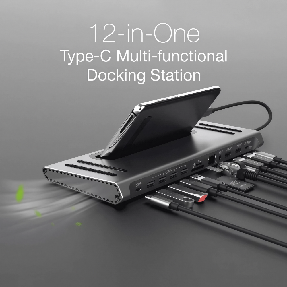 - 12-in-1 connectivity from a single USB-C uplink: displays, storage, network, audio and charging in one compact hub.