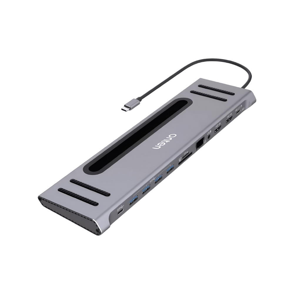 ONTEN 12-in-1 USB-C Dock (OTN-9199) — Dual 4K HDMI, USB 3.0×4, USB-C×2, SD/TF, RJ45, Audio, PD — SKU 06411