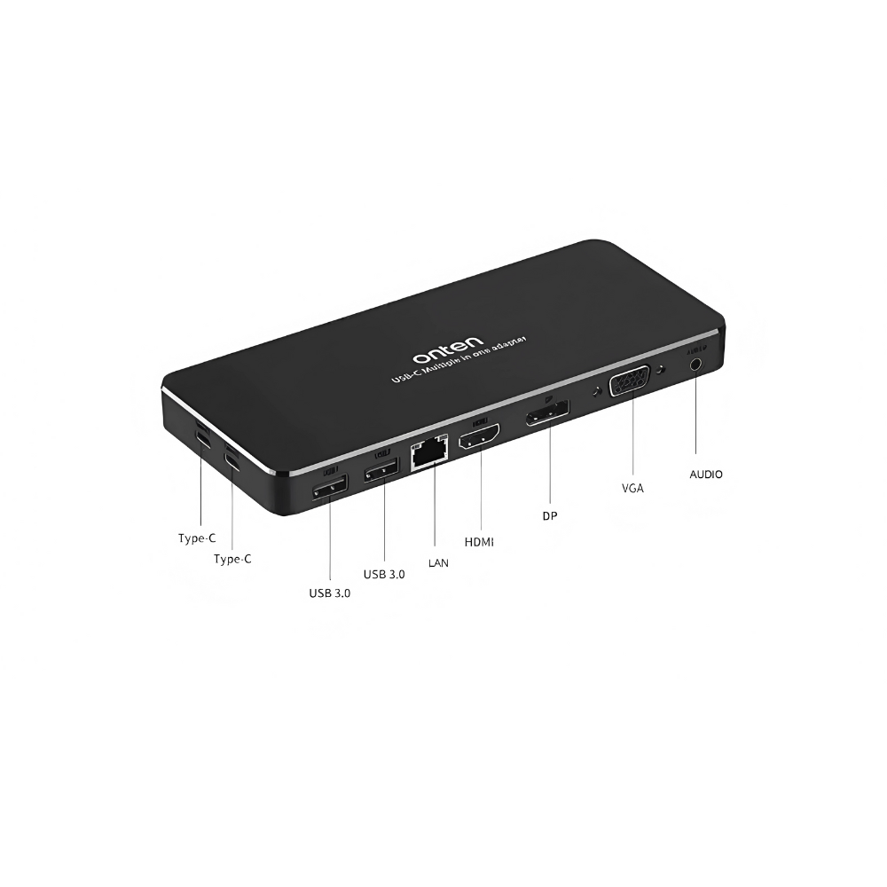 ONTEN OTN-9188S 9-in-1 USB-C Multi-Function Dock — Dual Display (HDMI/DP) + VGA, Gigabit LAN, Audio, USB Expansion — SKU 06442