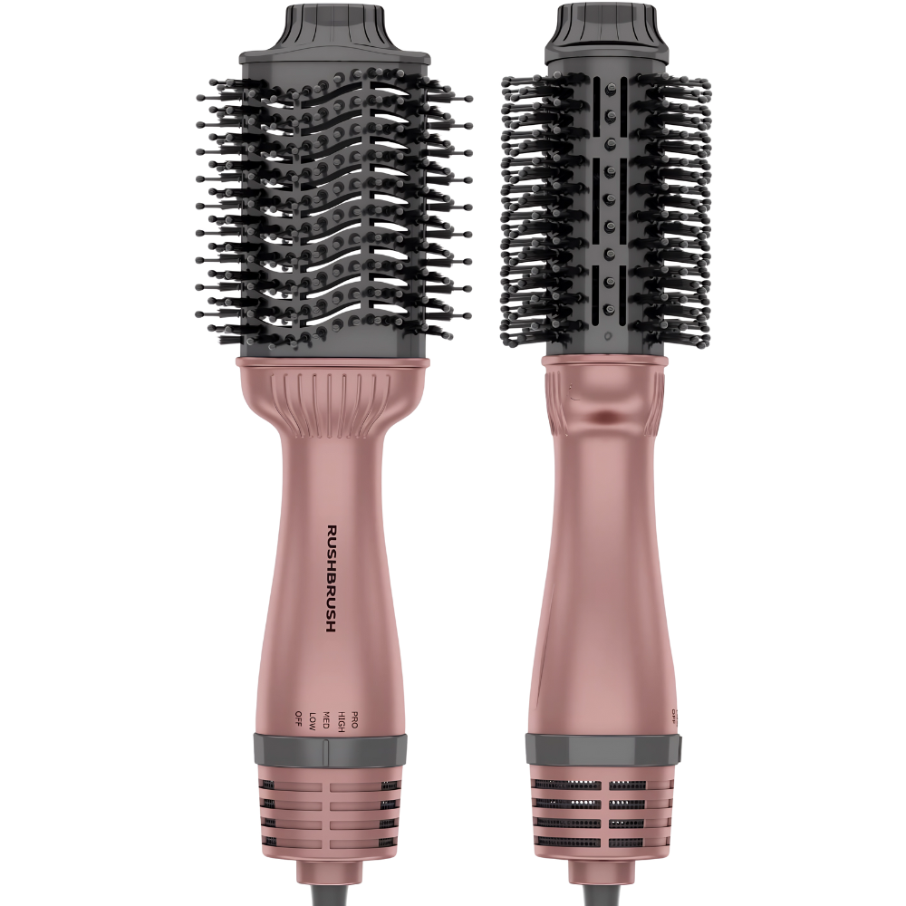 Meet the RushBrush V3 Pro, a premium hot air styler that delivers a smooth blowout with salon-level volume in minutes. Its oval barrel lifts roots and smooths lengths in one pass, while the combination of ionic and ceramic technology helps reduce frizz, boost shine, and protect hair by distributing heat evenly. Finished in an elegant rose gold, the V3 Pro looks as good on your vanity as your hair looks after styling.
