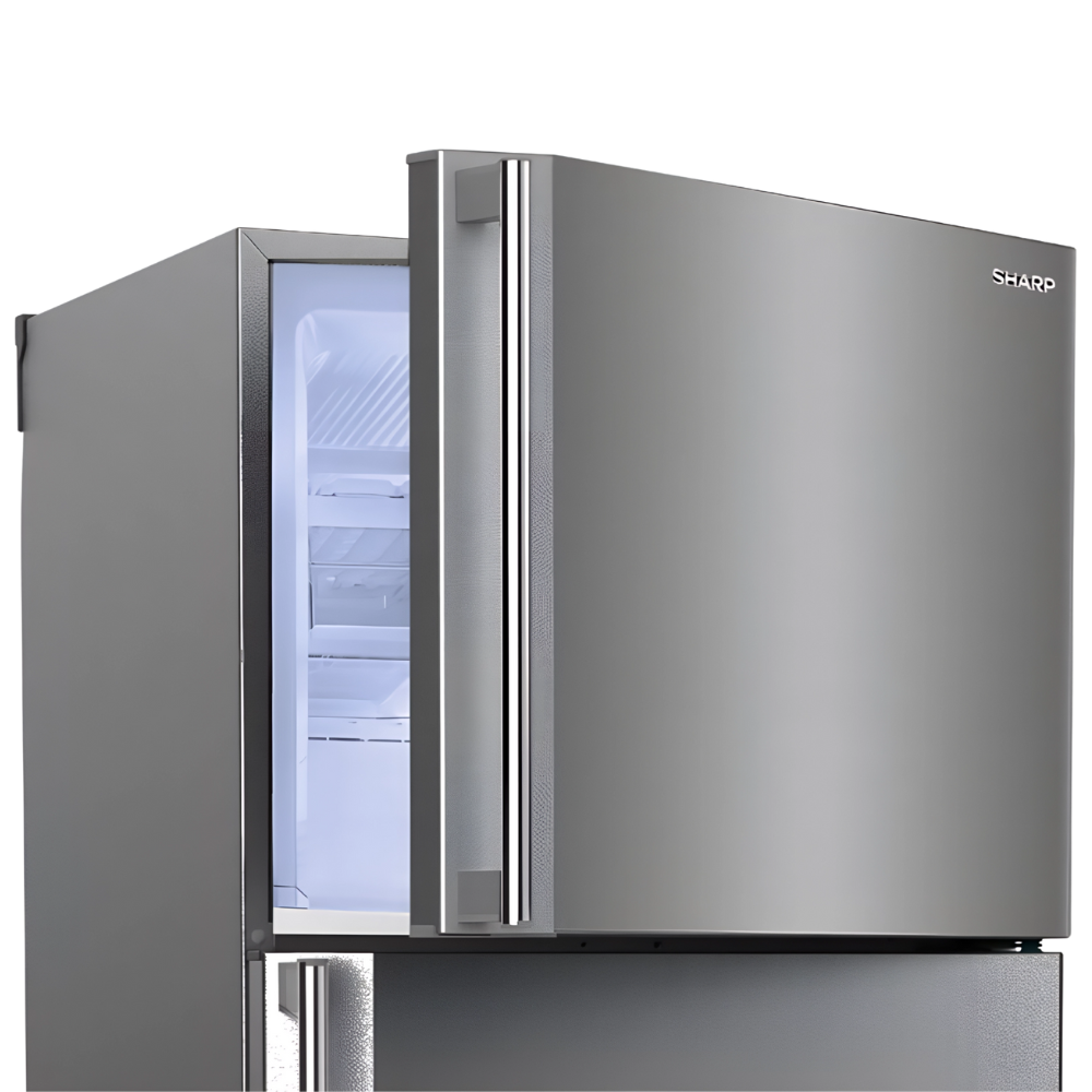 The Sharp SJ-48C(ST) is a 2-door, top-freezer style refrigerator offering approximately 396 litres net capacity in a sleek stainless-steel finish. Designed for efficient and modern homes, it features a No Frost system for easy maintenance, a Hybrid Cooling Panel for even temperature distribution and an advanced Ag+ Nano Deodorizer Filter to reduce odors and bacteria inside the unit. With interior glass shelving, LED lighting, built-in wheels & handles and a full 10-year free warranty, this model offers a strong combination of performance and convenience.