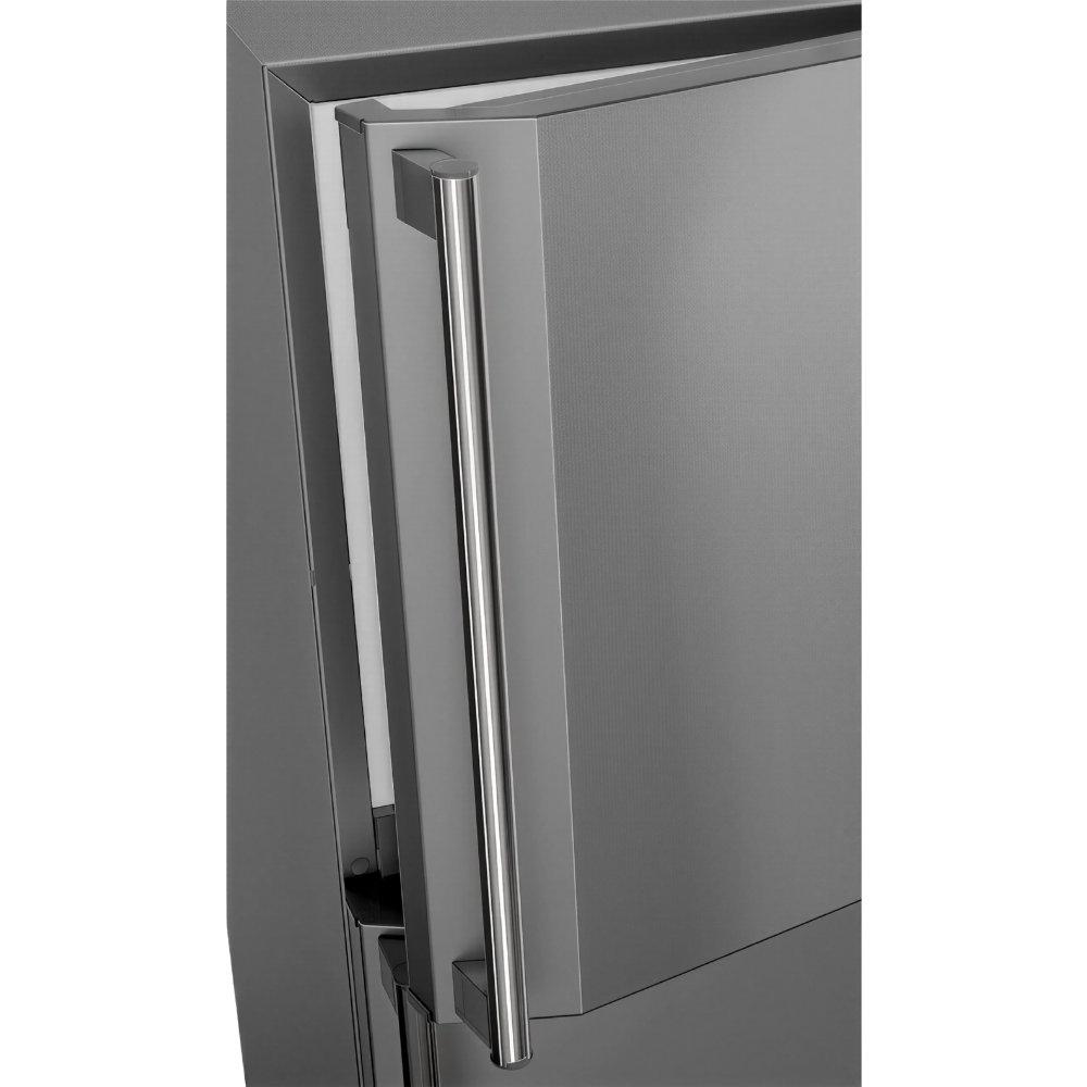 A roomy ~396-litre net capacity accommodates family-sized food storage, while the chic stainless-steel finish and cylindrical handle add a premium touch to modern kitchens.