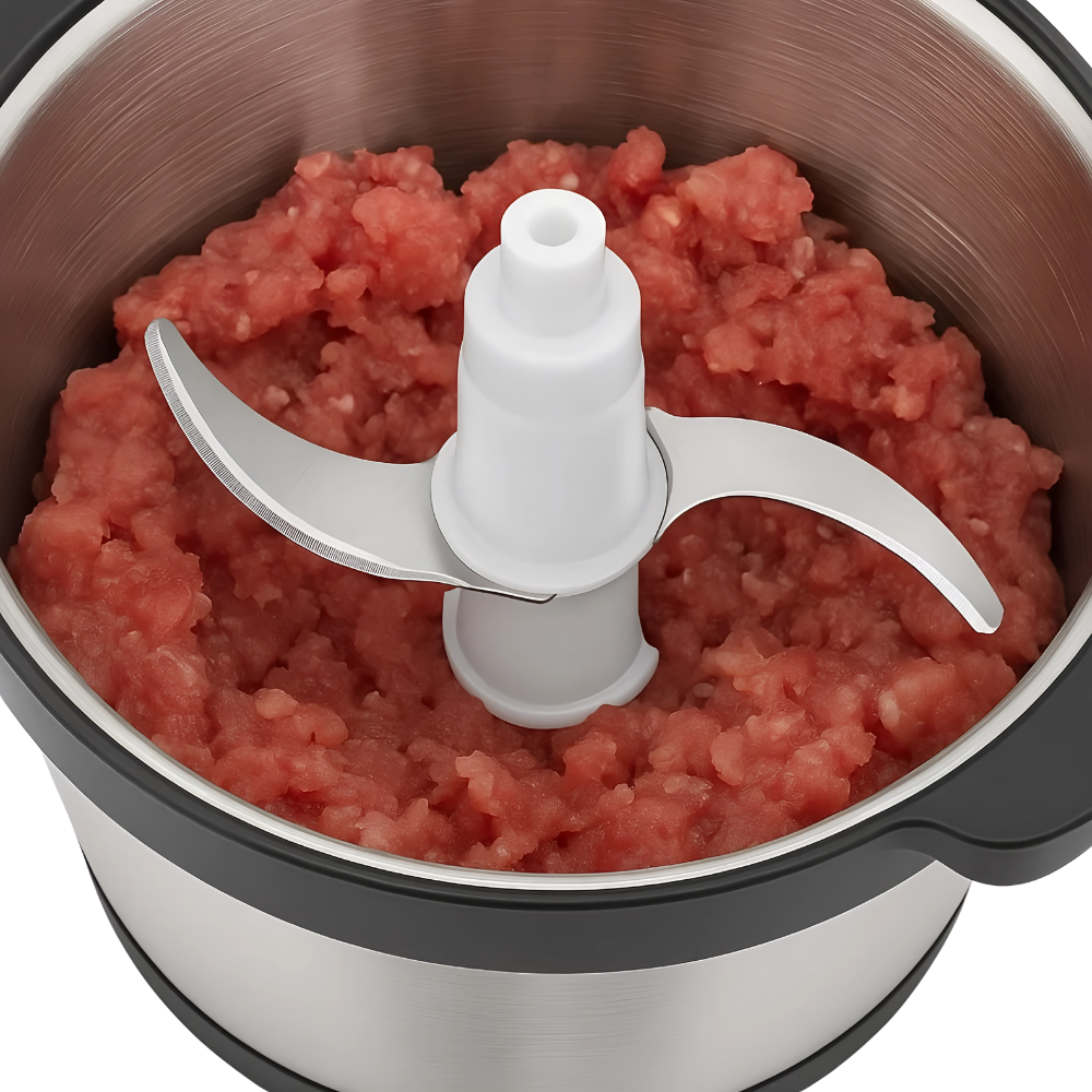 • Precision blades (double layer) for even results across meats and vegetables.