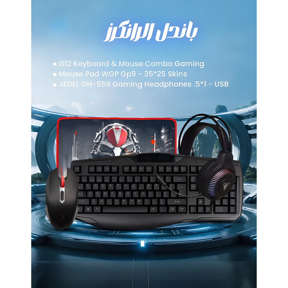 باندل الرانكرز للألعاب — كيبورد/ماوس G12 + ماوس باد WGP-GP9 + سماعة JEDEL GH-559