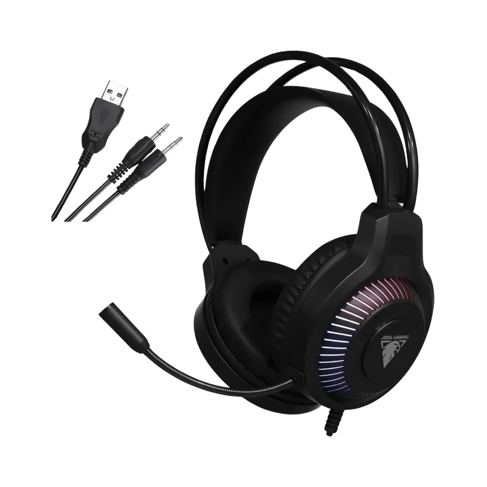 - Headset JEDEL GH-559 (Wired, Lighted): سماعة سلكية بإضاءة، توصيل 3.5 mm، ميكروفون مدمج، مريحة للاستخدام الطويل.