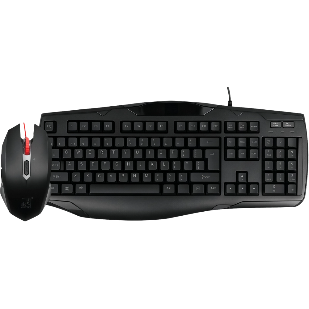 - Keyboard + Mouse G12 (USB): كيبورد كامل 104 زر بإضاءة (RGB/قوس قزح حسب النسخة)، ماوس سلكي DPI متعدّد حتى ~3200 DPI (حسب المورد).