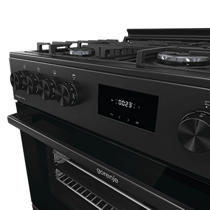 يجمع Gorenje GGI9C20B بين أداء الطهي القوي والتصميم الأنيق باللون الأسود. يضم سطح ٥ شعلات ساباف مع شبكات حديد زهر ProGrids وثبات ممتاز، مع إشعال بيد واحدة لسهولة التشغيل. داخل الفرن، توفر مروحة توزيع نتائج متجانسة، فيما تجعل ألواح التنظيف الحفزي الصيانة أسهل. ومع تايمر برمجة إلكتروني وضبط أدق، وميزة AirFry المتاحة في بعض الدُفعات، يصبح الطهي اليومي أسرع وأنظف. ضمان ٥ سنوات.