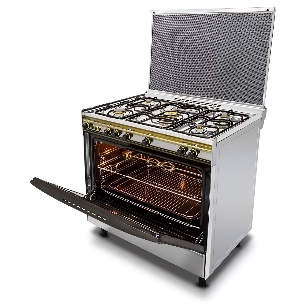 بوتاجاز كريازي 8900W مقاس ٩٠×٦٠ سم مناسب للبيوت اللي بتطبخ كتير وعايزين مساحة كبيرة وتجهيزات فرن متكاملة.