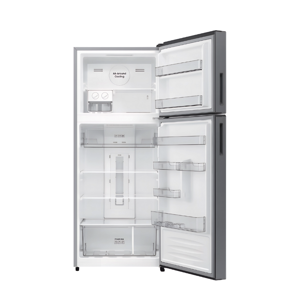 ثلاجة سامسونج بمجمد علوي – ٤١٩ لتر صافي – باب مسطح – أسود – No Frost – تبريد شامل – إنفرتر – RT40DG3110BVMR – ضمان ١٠ سنوات