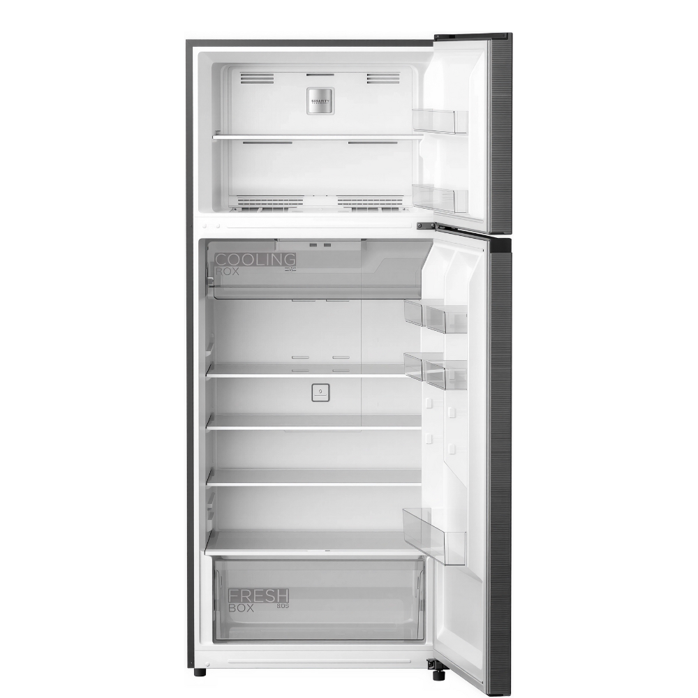 التصميم الخارجي أنيق بلون فضي جذاب، بينما توفر الأرفف المتينة والرحبة مرونة كبيرة في تنظيم الأطعمة الكبيرة مثل الأواني أو الزجاجات الطويلة. يأتي درج مخصص للخضروات والفواكه ليحافظ على نضارتها لفترة أطول، بالإضافة إلى أرفف الأبواب التي توفر مساحة مثالية للمشروبات والصلصات.