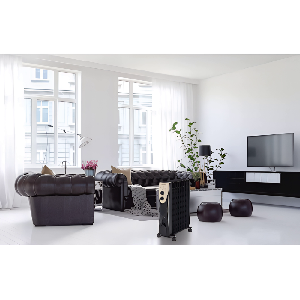 دفاية الزيت بلاك+ديكر OR011FD-B5 تقدم دفئاً مريحاً وفعّالاً في الأيام الباردة بقدرة كهربائية قوية ٢٥٠٠ وات. تحتوي على ١١ ريشة تسخين لتوزيع الحرارة بشكل متساوٍ في الغرفة، بينما تساعد مروحة توزيع الحرارة على تعزيز انتشار الهواء الدافئ بسرعة وكفاءة. يمكنك التحكم في مستوى الدفء مع ٣ مستويات حرارة حسب حجم الغرفة واحتياجك، ويعمل الترموستات على الحفاظ على درجة الحرارة المطلوبة بسهولة. تتميز الدفاية أيضاً بـحماية من الحرارة الزائدة وحبل يمكن لفه لتخزين مرتب بعد الاستخدام. تصميمها العصري باللون الأسود يضيف لمسة أنيقة لأي مساحة داخل المنزل.